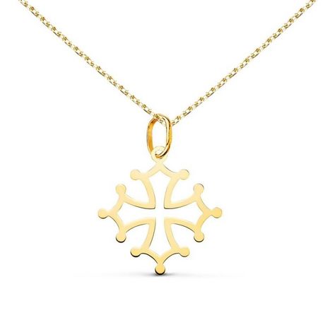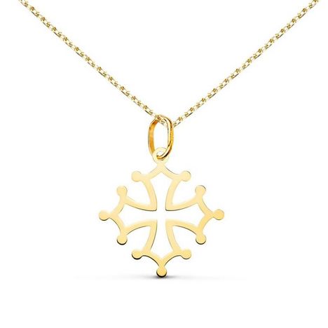 Collier - Médaille Croix Occitane Or 18 Carats 750/000 Jaune - Chaine Dorée