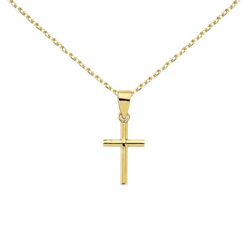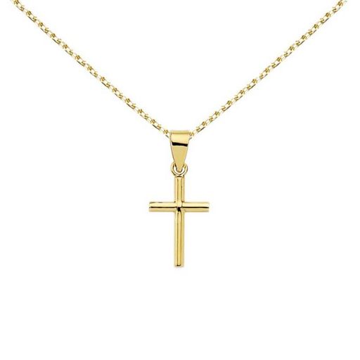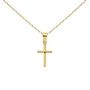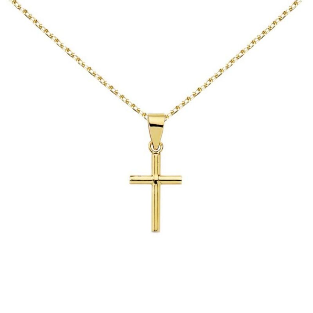 ⭐, Ce magnifique pendentif arbore une croix en or jaune, subtile et raffinée, mesurant 1,65 cm de hauteur sur 0,9 cm de largeur. Son poids indicatif est de 0,20 gramme.