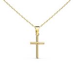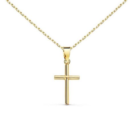 ⭐, Ce magnifique pendentif arbore une croix en or jaune, subtile et raffinée, mesurant 1,65 cm de hauteur sur 0,9 cm de largeur. Son poids indicatif est de 0,20 gramme.
