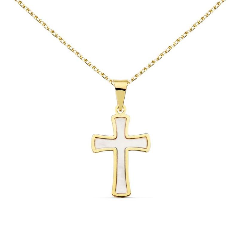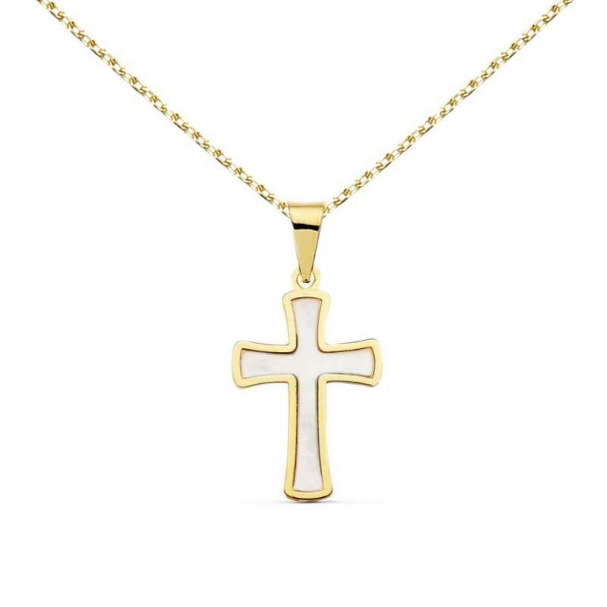 Collier - Médaille Croix Or 18 Carats 750/000 Jaune et Nacre - Chaine Dorée
