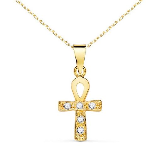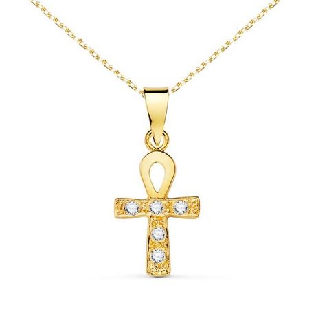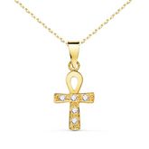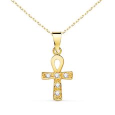 ⭐, Pendentif Croix de la Vie Or 18 Carats 750/000 Jaune Sertie de Zirconiums