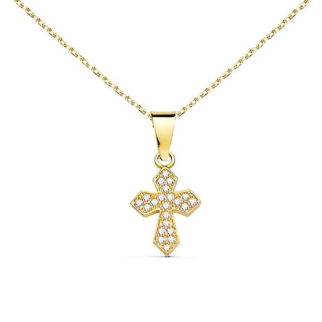 ⭐, Pendentif Croix Or 18 Carats 750/000 Jaune Sertie de Zirconiums⭐, Dimensions 1.4cm*0.9cm - Poids Indicatif : 0.45gr⭐, Chaîne Maille Forçat en Métal Doré Ajustable 42cm-45cm⭐, Idéal Baptême - Communion - Enfant ⭐, Bijou livré dans un écrin et accompagné d'un cer