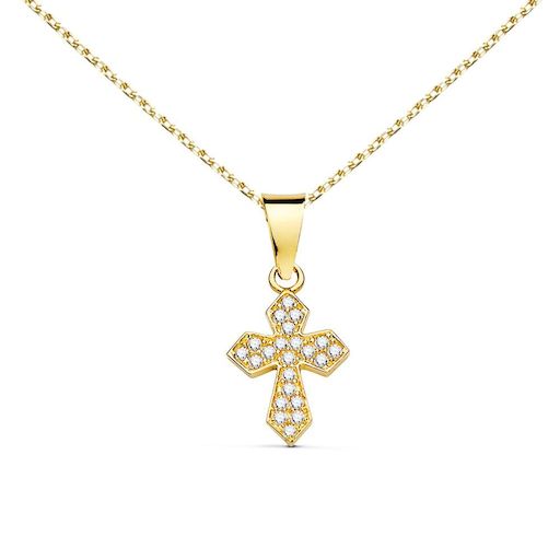 Collier - Médaille Croix Or 18 Carats 750/000 Jaune et Zirconiums - Chaine Dorée