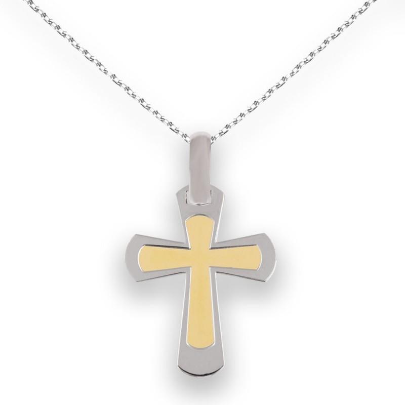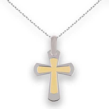 Collier - Médaille Croix Or Bicolore - Chaine Offerte