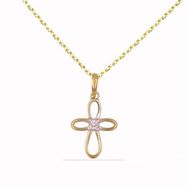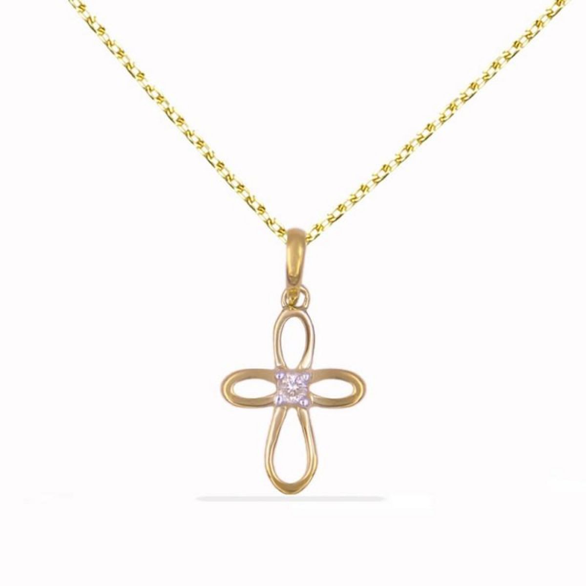 Collier - Médaille Croix Or Jaune et Diamant - Chaine Dorée