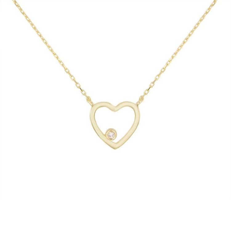 Collier Or Jaune et Diamant Solitaire - Motif Coeur – Femme