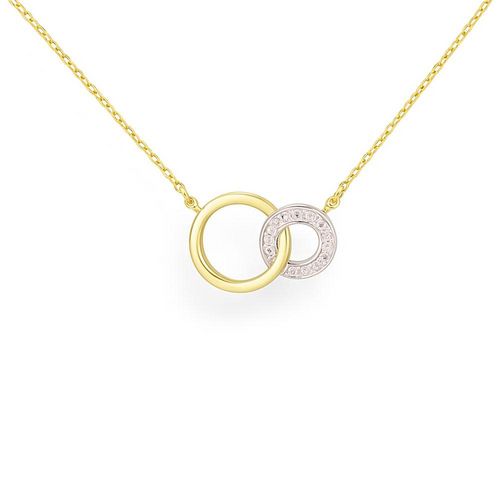 Collier Or Jaune 375/000 et Rhodiage BlancMotif Anneaux Or et Serti de Diamants 0.006 CaratsDimensions du Motif Anneaux 1.30cm*0.95cm - Poids Indicatif 1.15grChaîne Forçat - Longueur du Collier 42cm avec un anneau de réduction à 40cmBijoux livré dans un écrin et accompagné d'un certificat d'authenti