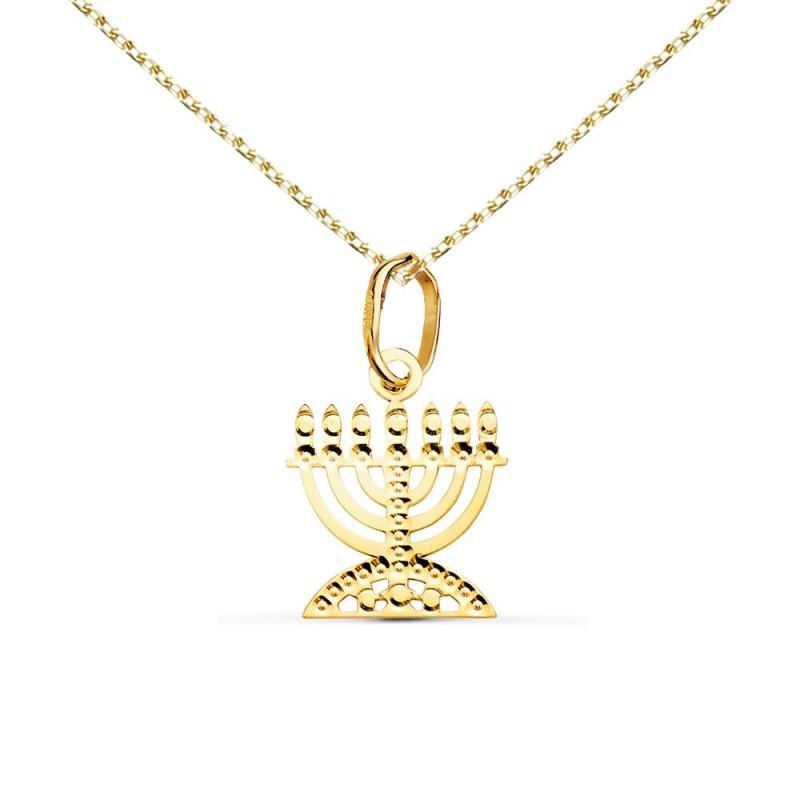 Collier - Pendentif Menorah Or 18 Carats 750/000 Jaune - Chaine Dorée