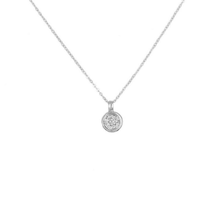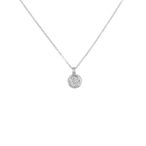 Collier - Pendentif Or Blanc Pavé Diamants - Chaine Argentée - Femme