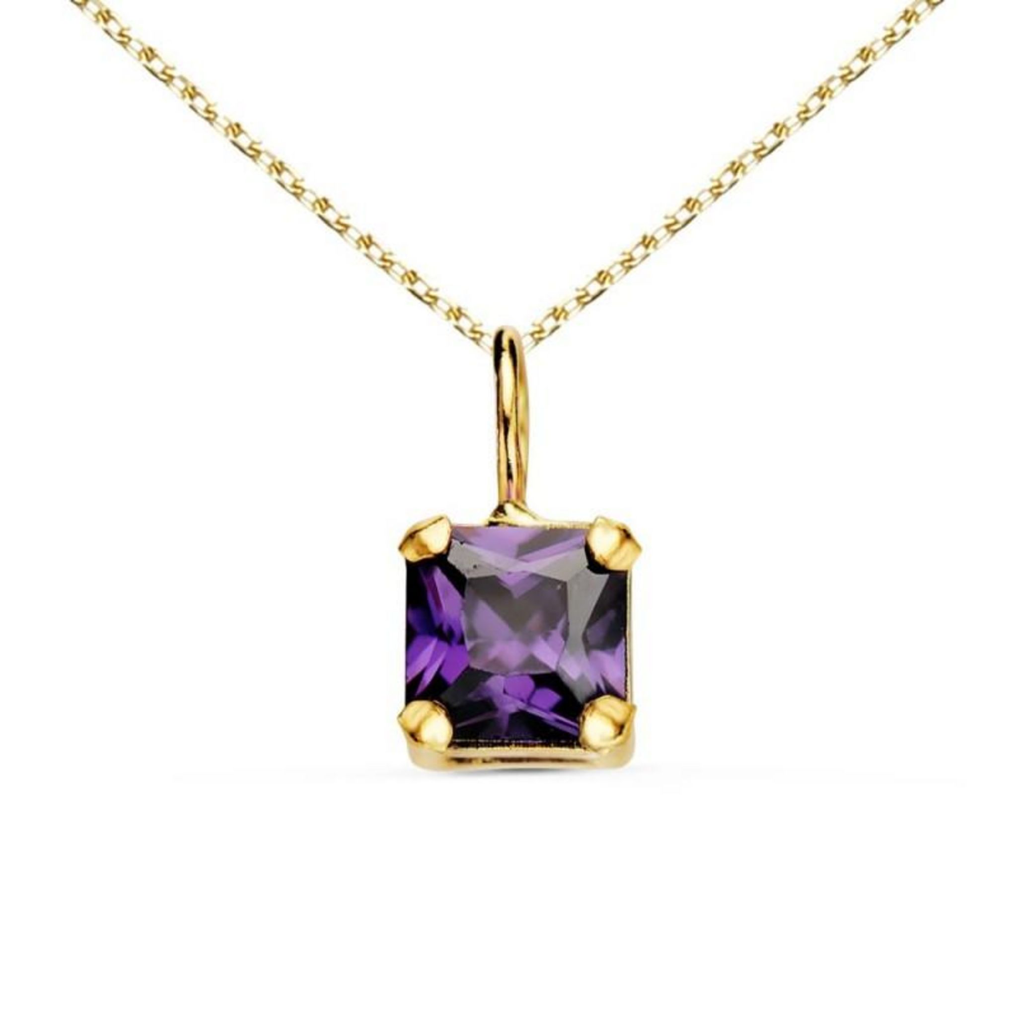 Collier - Pendentif Or Jaune 18 Carats 750/000 - Zirconium Améthyste - Chaine Dorée