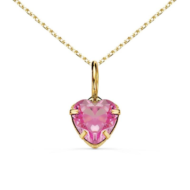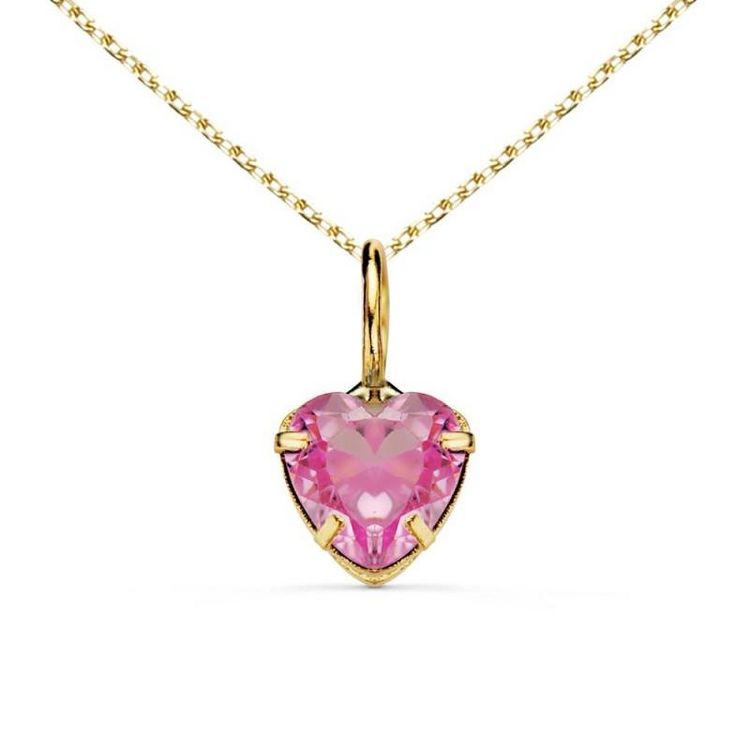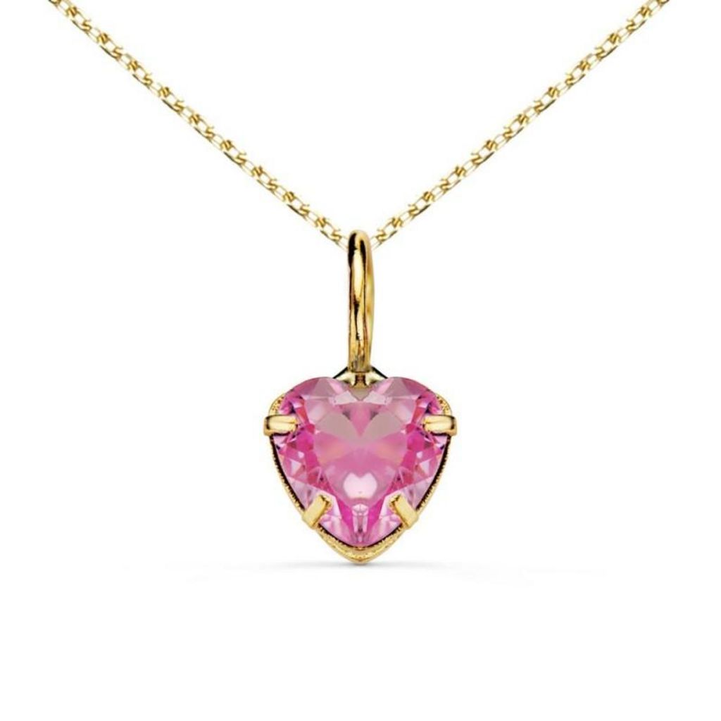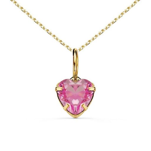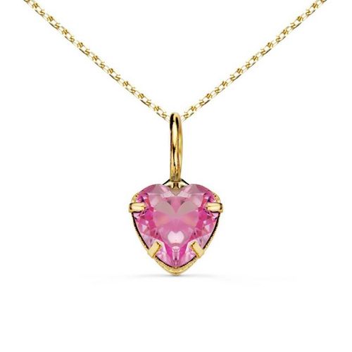 Collier - Pendentif Or Jaune 18 Carats 750/000 - Zirconium Rose - Chaine Dorée