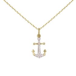 Collier - Pendentif Or Jaune Ancre Serti de Zirconiums - Chaine Dorée Offerte