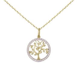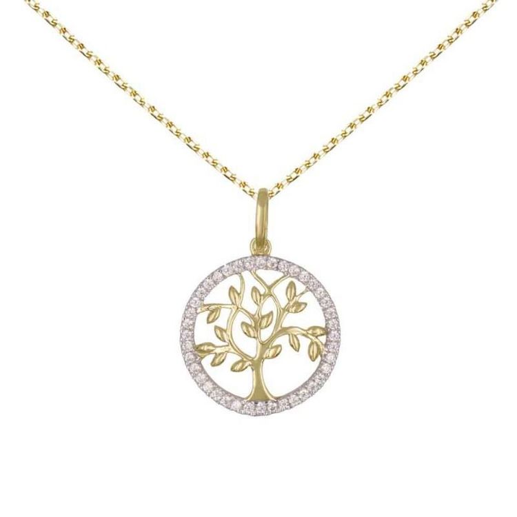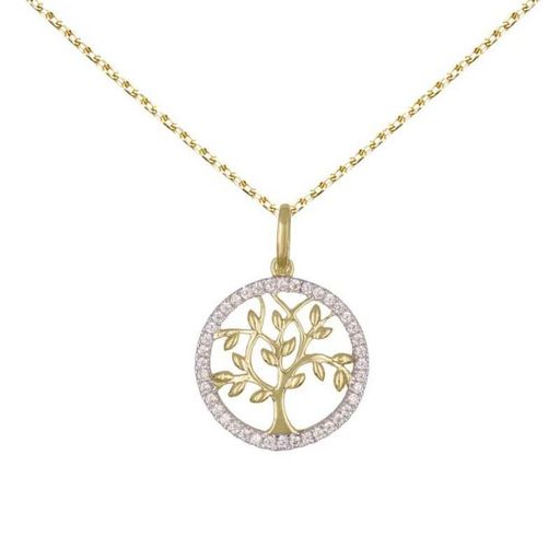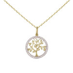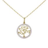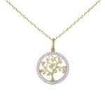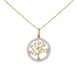 Collier - Pendentif Or Jaune Arbre de Vie Serti de Zirconiums - Chaine Dorée Offerte