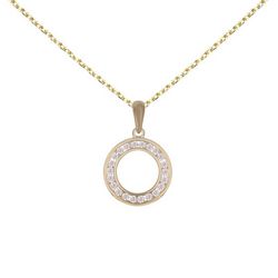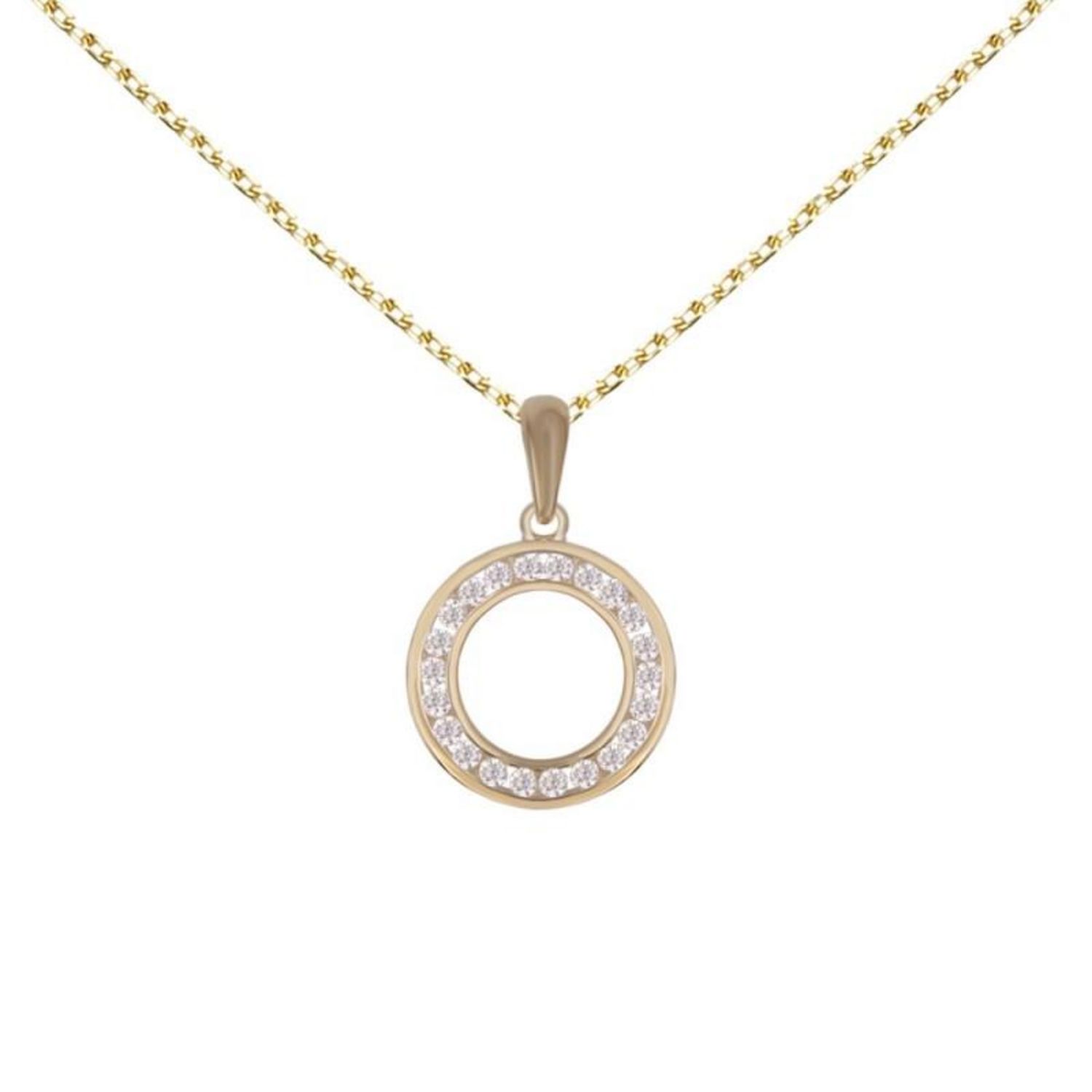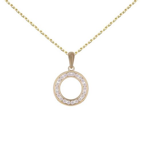 Collier - Pendentif Or Jaune Cercle Serti de Zirconiums - Chaine Dorée Offerte