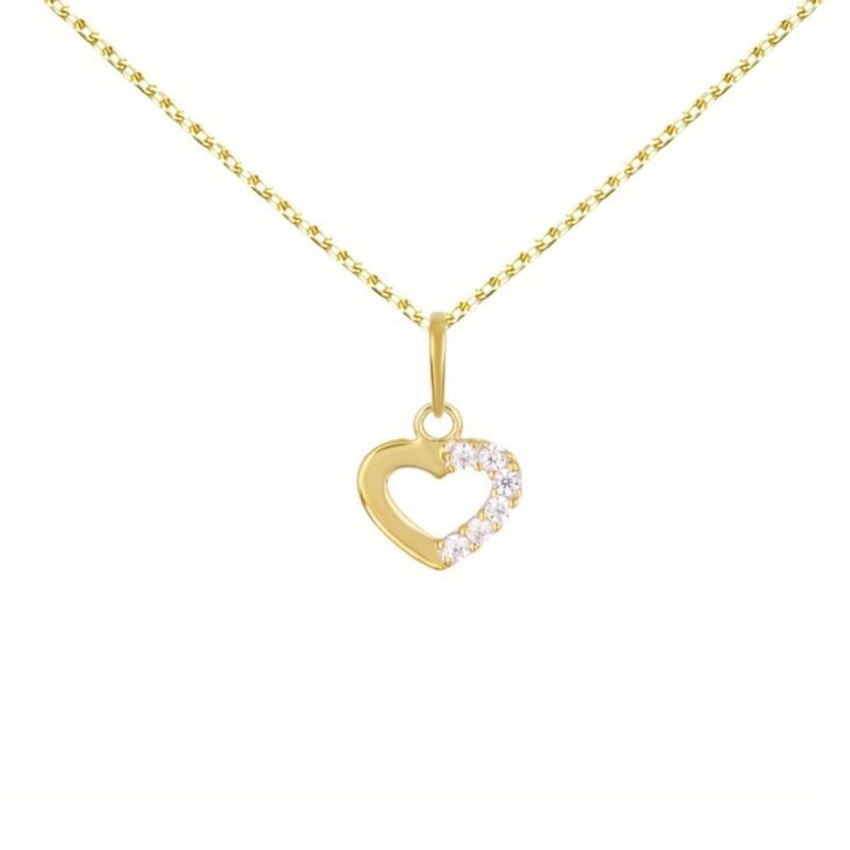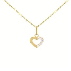 Collier - Pendentif Or Jaune Coeur Serti de Zirconiums - Chaine Dorée Offerte