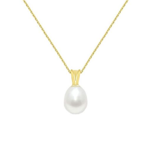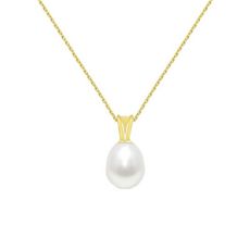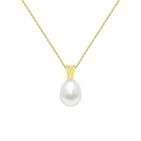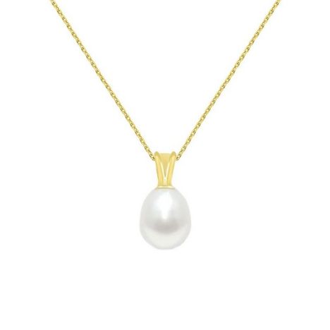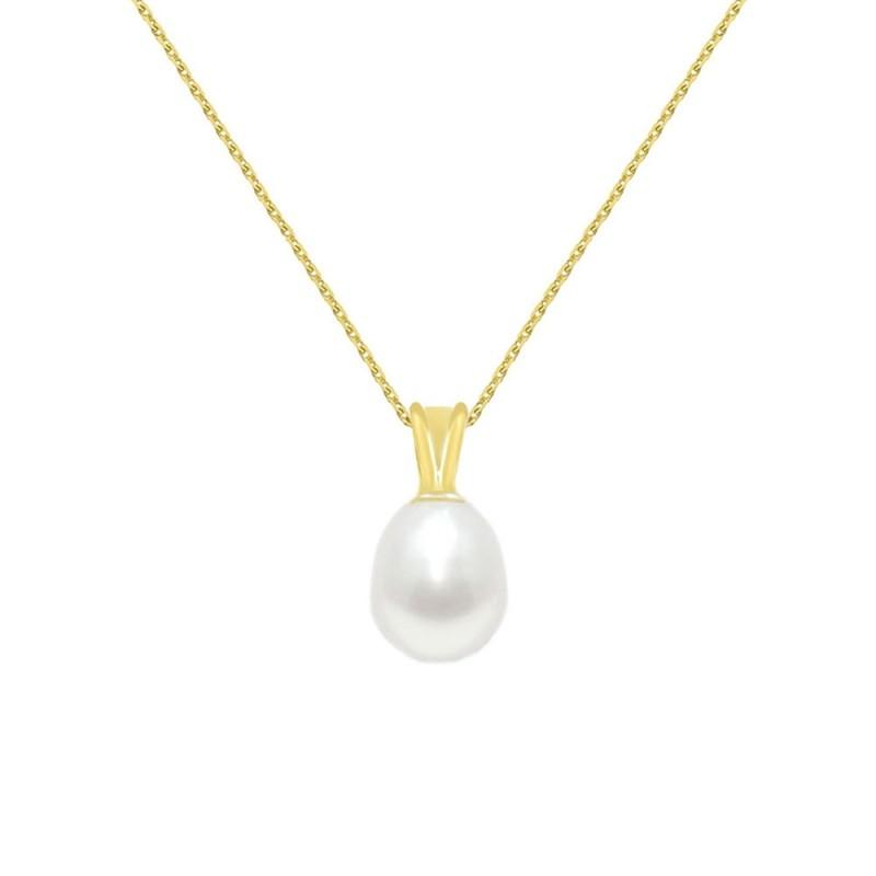 Collier - Pendentif Or Jaune et Perle de Culture Goutte - Chaine Dorée Offerte - Femme