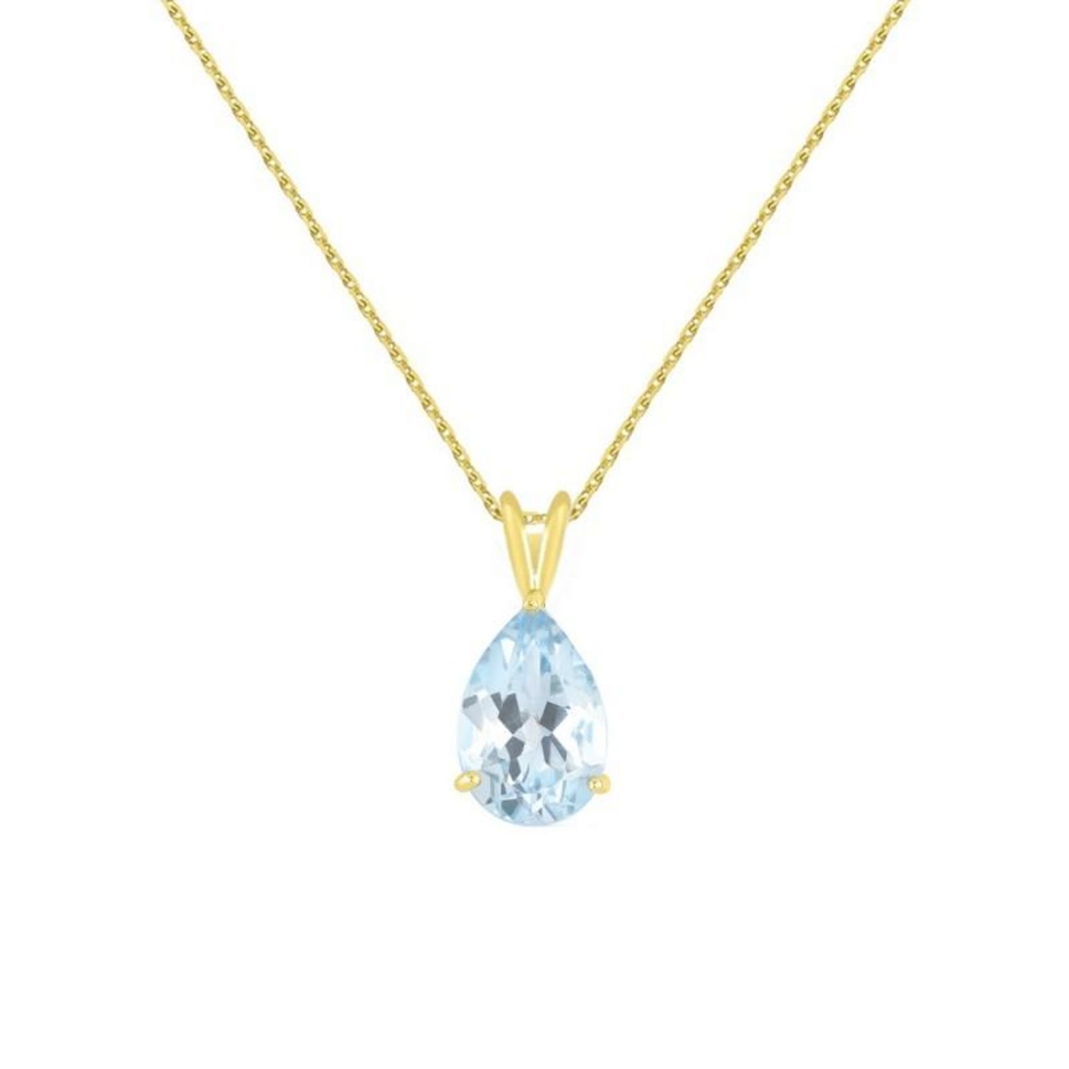 Collier - Pendentif Or Jaune Topaze Bleue Goutte - Femme