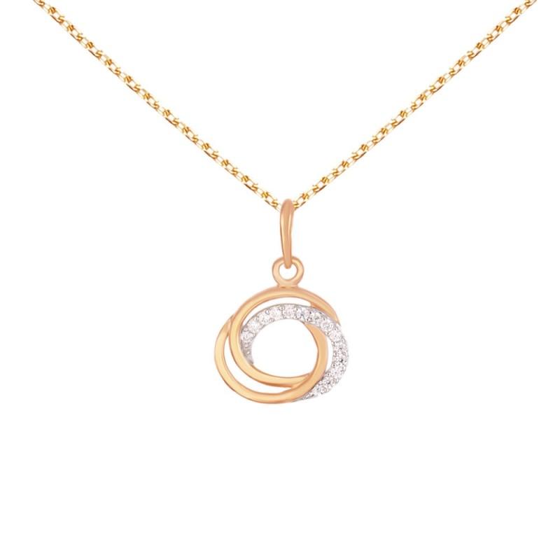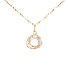 Collier - Pendentif Or Rose Anneaux Enlacés Sertis de Zirconiums - Chaine Dorée Rose Offerte