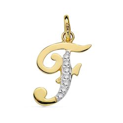 Pendentif Or 18 Carats 750 Jaune Serti de Zirconiums - Initiale Lettre F - Chaine Offerte