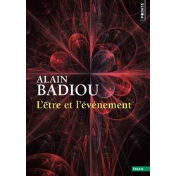 Articuler pour notre temps une philosophie qui, quant à la pensée de l'être, ouvre une autre voie que celle de Heidegger et, quant à la doctrine du sujet, se tienne au-delà de Lacan : tel est l'enjeu. De l'hypothèse que la pensée de l'être s'accomplit dans les mathématiques et de la portée ontologique de la théorie des ensembles de Cantor se déduit une appréhension de l'être comme multiple. Reste qu'existe un site de ce qui n'est pas l'être : c'est celui de l'événement, terme surnuméraire pour un franchissement indécidable au savoir et dont la vérité est toujours par avance indiscernable. Le sujet, dès lors, loin d'être le garant ou le support de la vérité, en est bien plutôt une instance locale, improbable, qui tire du devenir aléatoire d'une vérité dans l'événement son peu d'être. Il n'en tisse pas moins une fidélité qui s'inscrit dans l'art, la science, la politique et l'amour.