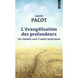L'évangélisation des profondeurs. Beaucoup de personnes ne savent comment relier leur réalité psychologique à leur vie spirituelle. Est-il possible de vivre, en chrétien, les différents états de notre vie émotionnelle, comme la peur, la honte ou la souffrance ? Simone Pacot témoigne d'un chemin possible d'unité intérieure, l' évangélisation des profondeurs , qui articulerait les trois dimensions de l'être : corporelle, psychique et spirituelle. Avec justesse et bienveillance, elle invite le lecteur à se mettre à l'écoute de la Parole de Dieu et à déceler comment la grâce divine peut revivifier, dans chaque part de son être, son humanité.