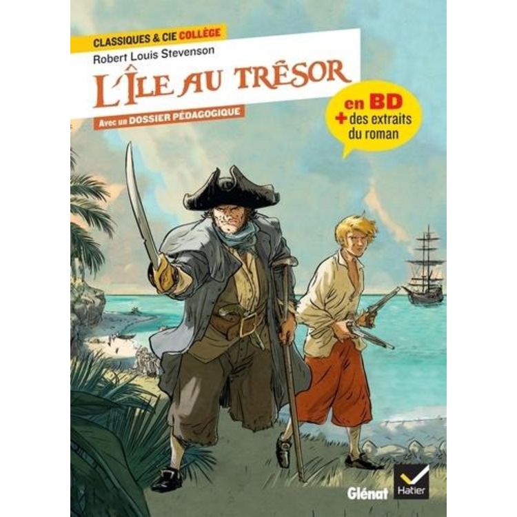 L'adaptation en BD du célèbre récit d'aventures, suivie d'une sélection d'extraits. Dans une édition enrichie de nombreux outils pédagogiques, en lien avec les objets d'étude Partir à l'aventure ! du nouveau programme de français de 6e . Le roman A la mort soudaine de Billy Bones, un étrange personnage, le jeune Jim Hawkins découvre dans ses affaires une carte indiquant l'emplacement d'un trésor... Des pirates, un trésor, une île déserte, un jeune héros intrépide : L'Ile au trésor réunit bien tous les ingrédients du récit d'aventures. En BD et sous forme d'extraits L'édition Classiques & Cie collège invite à découvrir le roman à travers la version intégrale de la bande dessinée de Christophe Lemoine (scénario) et Jean-Marie Woehrel (dessin). Elle permet également d'accéder au texte original grâce à un large choix d'extraits du roman. Les compléments pédagogiques 1. Un avant-texte pour entrer dans le récit 2. Une rubrique Je fais le point ! pour un premier bilan 3. Un parcours de lecture analytique, qui invite à confronter le texte original et la BD 4. Des ateliers interdisciplinaires 5. Un carnet de lecteur pour exprimer ses impressions Le livre du professeur Dans le guide pédagogique, téléchargeable sur www. editions-hatier. fr (Lien -> http : //www. editions-hatier. fr/), l'enseignant trouvera un descriptif complet de la séquence proposée et les corrigés des questionnaires.