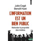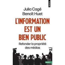 Un plaidoyer citoyen argumenté en faveur de l'indépendance et de la pluralité des médias, l'un des fondements de notre débat démocratique. La crise des médias et la défiance des citoyens envers l'information grandissent chaque jour. Or cette situation n'a rien d'inéluctable, si l'on traite le problème à la racine : la propriété des médias. L'information est un bien public dont la production doit être confiée à des journalistes disposant d'une véritable indépendance éditoriale. Ce livre vise à armer les citoyens, les journalistes et les régulateurs en faisant toute la lumière sur les différentes formes de propriété des médias et les limites des régulations existantes. Les deux auteurs proposent une loi de démocratisation de l'information permettant aux journalistes et aux citoyens de reprendre enfin le contrôle des médias : des médias indépendants gouvernés de manière démocratique et tournés vers la production d'une information de qualité. Professeure d'économie à Sciences Po Paris, Julia Cagé est l'auteure de Sauver les médias (2015), Le Prix de la démocratie (2018) et d'une Histoire du conflit politique (avec Thomas Piketty, 2023). Avocat au barreau de Paris, Benoît Huet a cofondé le cabinet Avrillon-Huet. Il enseigne le droit des sociétés et le droit des médias à l'Essec.