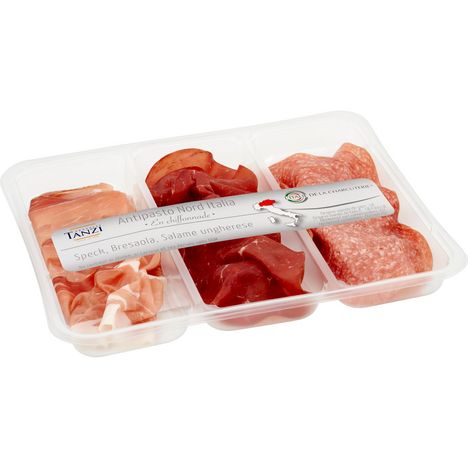 Speck (34%) : viande de porc (origine : UE), sel, épices, dextrose, antioxydant : E301, conservateur : E250.