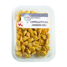 Authentiques pâtes fraîches italiennes, aux œufs de poules élevées au sol, ces cappelletti sont farcies au jambon cru (16%). Leur cuisson ultra rapide en fait un produit à déguster facilement. C’est toute l'Italie dans votre assiette !