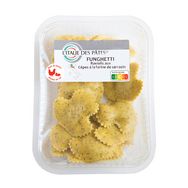 Pâtes fraîches aux oeufs, à la farine de blé tendre, à la semoule de blé dur et à la farine de sarrasin, farcies aux cèpes