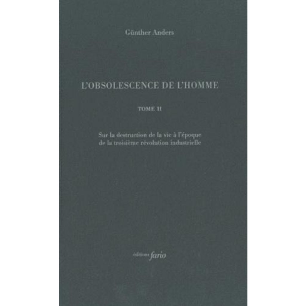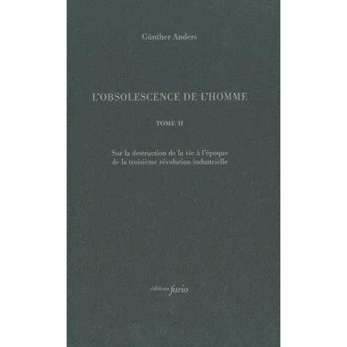 L'OBSOLESCENCE DE L'HOMME. TOME 2, SUR LA DESTRUCTION DE LA VIE A L'EPOQUE DE LA TROISIEME REVOLUTION INDUSTRIELLE, Anders Günther
