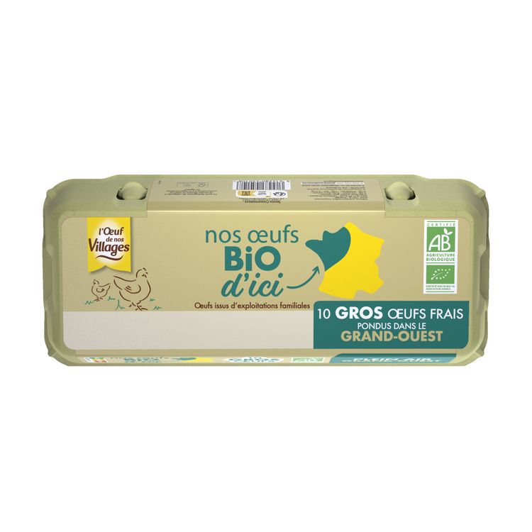 Nos Œufs BIO d'ICI : 6 filières régionales BIO mises en avant sur la boite pour plus de transparence. Des œufs calibre GROS pour plus de générosité!