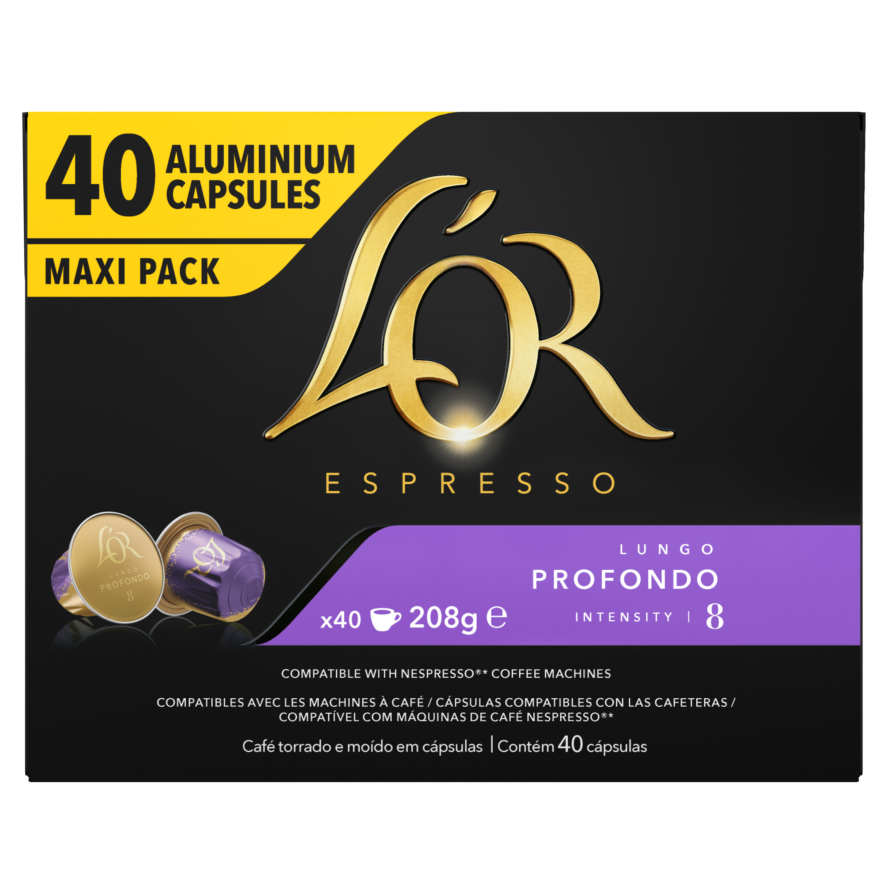 L’OR LUNGO PROFONDO monte en puissance avec des arômes intenses et épicés et des notes d’amandes grillées et de réglisse, accompagnés d’une mousse chatoyante aux nuances de bronze. Café moulu en capsules