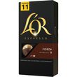 Café moulu en capsules Donnez libre cours à la puissance impétueuse de L’OR Espresso FORZA, un espresso pur, massif et complexe à l’alchimie d’arômes évoquant le chêne et la réglisse, illuminé par sa délicate mousse ambrée.