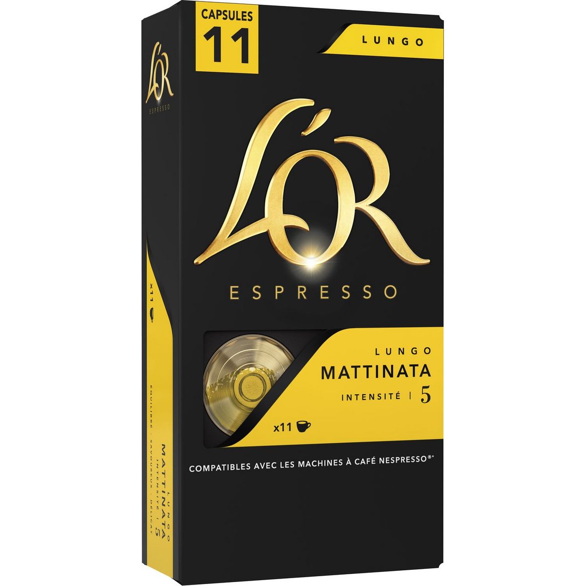 Débutez la journée en beauté avec un L'OR Lungo MATTINATA. Ce savoureux mélange subtil et équilibré aux délicates notes de céréales est rehaussé d’une mousse légère. À déguster de préférence sous forme de lungo. Café moulu en capsules