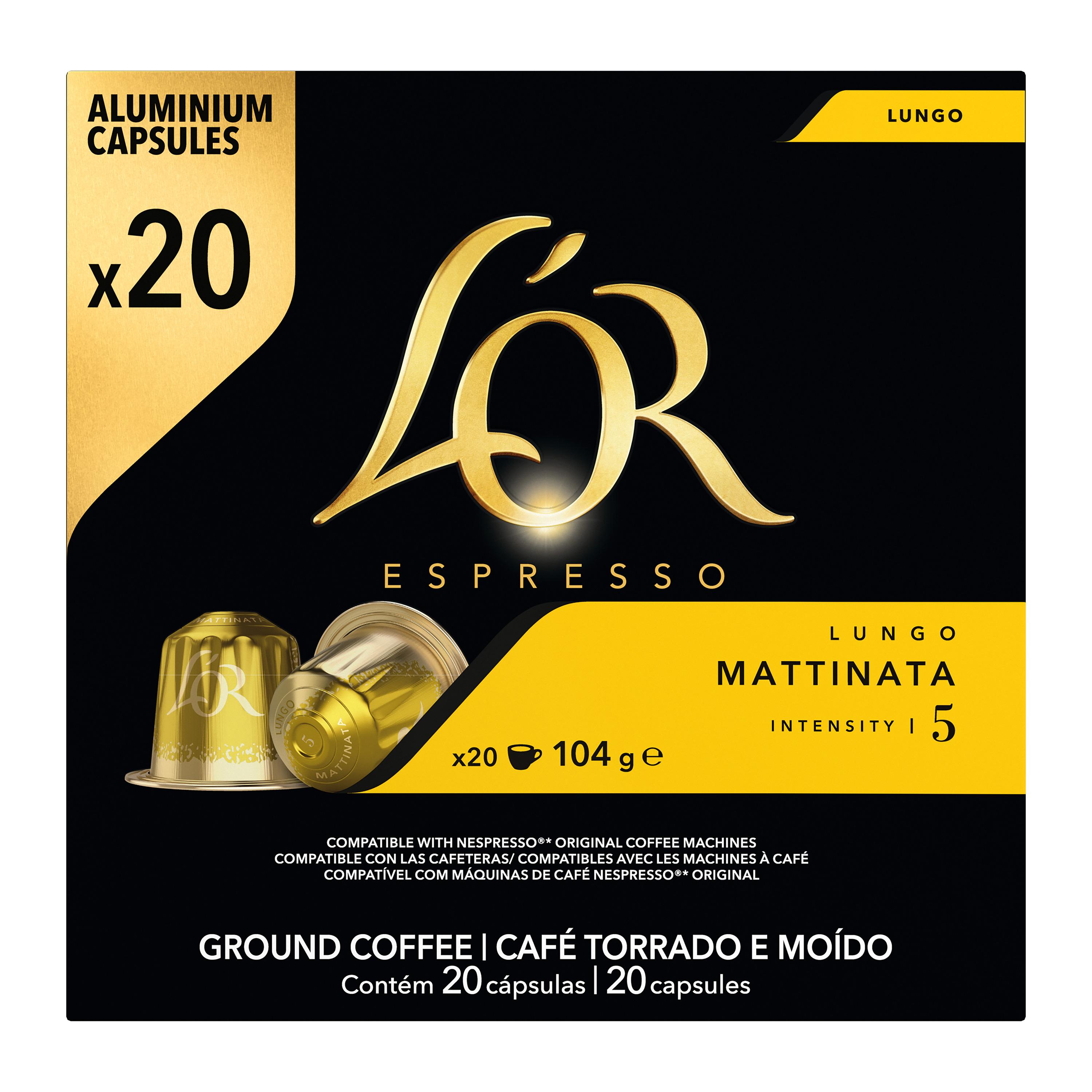 Débutez la journée en beauté avec un L'OR Lungo MATTINATA. Ce savoureux mélange subtil et équilibré aux délicates notes de céréales est rehaussé d’une mousse légère. À déguster de préférence sous forme de lungo.