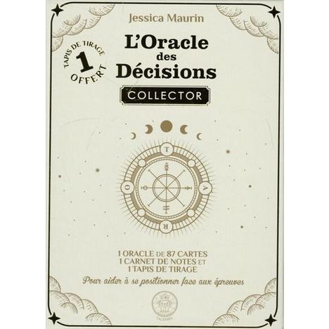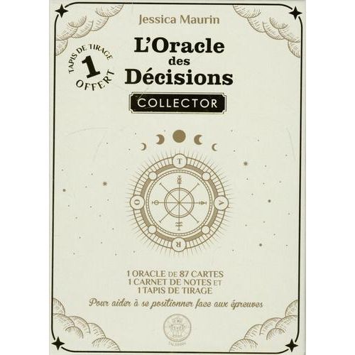 Souvent indécis ? Besoin d'un conseil pour adopter la juste posture ? Découvrez ou redécouvrez L'oracle des décisions dans sa version Collector. Composé d'un set de 87 cartes et son pochon de rangement, d'un tapis de tirage en velours noir et or et d'un carnet de notes il sera un guide au quotidien, à glisser dès maintenant dans votre sac à main ! L'oracle des décisions est un oracle pratique et simple ! La toute nouvelle édition Collector est composé de 87 cartes vernies et plus épaisses, de son pochon de rangement, d'un tapis de tirage en velours noir et or et d'un carnet de notes vous permettant d'aborder vos problématiques et d'explorer des pistes de réflexions. Cet oracle est un outil pragmatique et ludique pour des moments d'introspection.