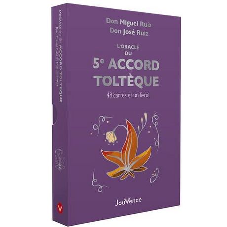 Un oracle puissant avec toute la sagesse du 5e accord toltèque ! Don Miguel Ruiz et don José Ruiz ont créé ce magnifique oracle contenant 48 cartes et un livret explicatif pour que vous puissiez mettre en pratique le 5e accord toltèque. Avec cet accord, il s'agit de vous offrir le pouvoir du doute afin de voir toute votre réalité avec les yeux de la vérité, sans mots. Cet accord, qui a changé la vie de millions de personnes à travers le monde, vous amène à un niveau de conscience plus profond. Laissez-vous guider par un tirage quotidien et imprégnez-vous des différents messages : Je suis l'artiste de ma propre vie , Je suis mon instinct, cette faculté innée , Je m'aime et je me respecte , Je suis parfait tel que je suis ...