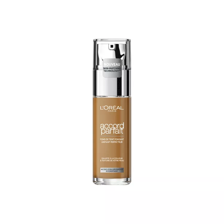 Découvrez la nouvelle formule du Fond de Teint Accord Parfait de L'Oréal Paris, formulée avec jusqu’à 6 pigments pour s’adapter à chaque tonalité de peau. Disponible en 48 teintes. 99,5%* des femmes ont trouvé leur accord parfait. Enrichi avec de l’acide hyaluronique hydratant. Couvrance naturelle sans démarcation. *Test consommateur sur 211 femmes avec 48 teintes - Teint unifié - Résultat naturel sans démarcation - Peau sublimée et hydratée pendant 24H* - Dès 2 semaines la peau est plus lisse et éclatante ** * Test instrumental **selon une étude consommateur sur 291 femmes représentatives des teintes mondiales trouvant leur teinte dans la gamme Accord Parfait