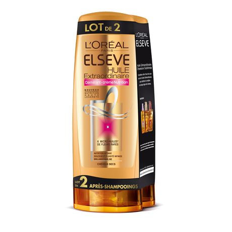 Les cheveux secs sont souvent rêches, ternes et sans mouvement. Pour leur redonner douceur, fluidité et brillance, il faut un soin intense. Elsève Après-Shampooing Démêlant-Crème Nutrition Huile Extraordinaire - Cheveux Secs Lot de 2x200ml