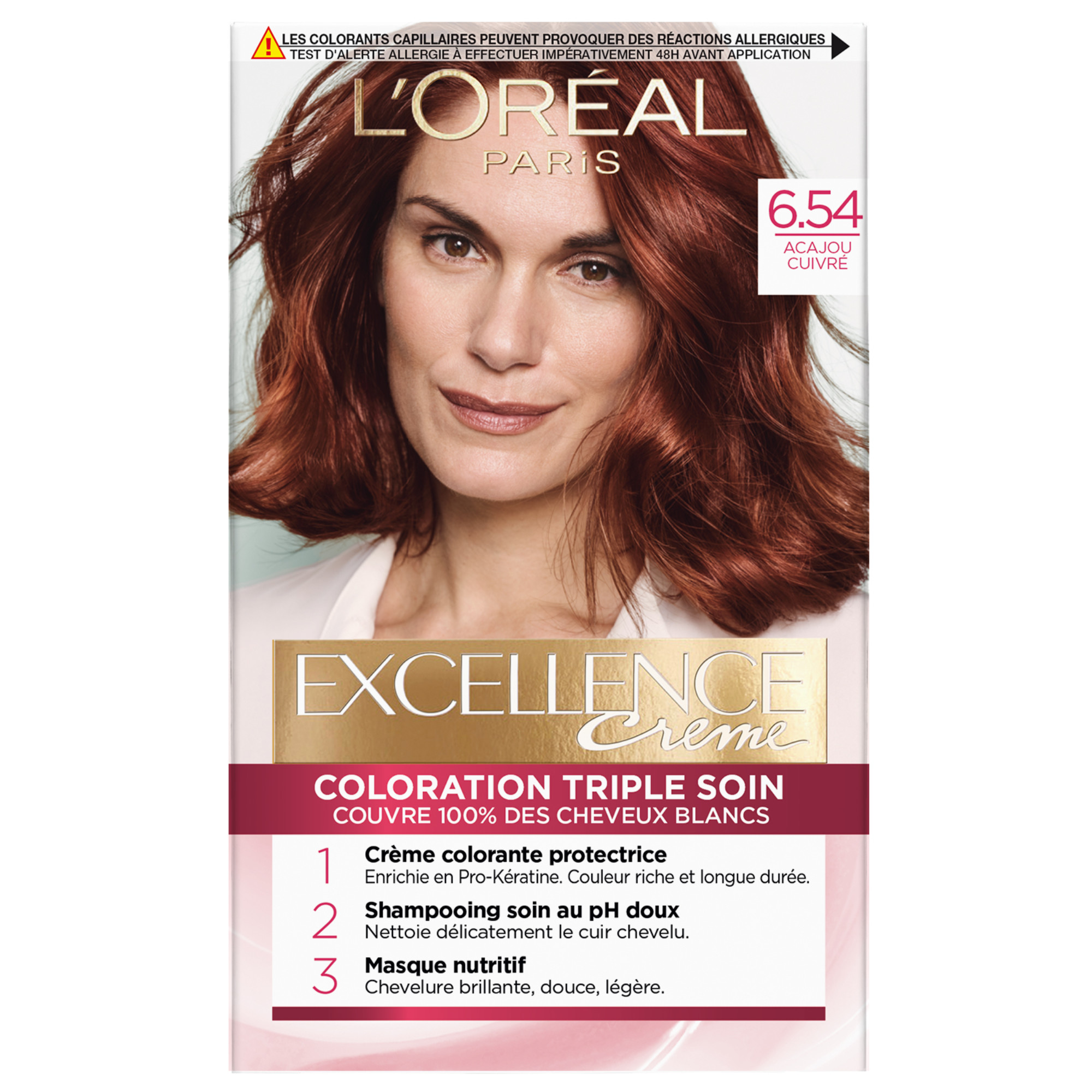 Nouveau Excellence Crème, la coloration qui vous respecte* grâce à son nouveau rituel triple soin. 1) Respecte le cheveu grâce à la crème colorante protectrice. Enrichie en Pro-Kératine et actifs de sérum protecteur qui préservent le cheveu pendant l