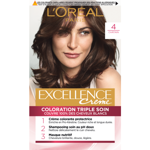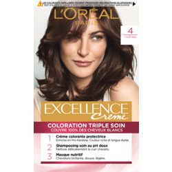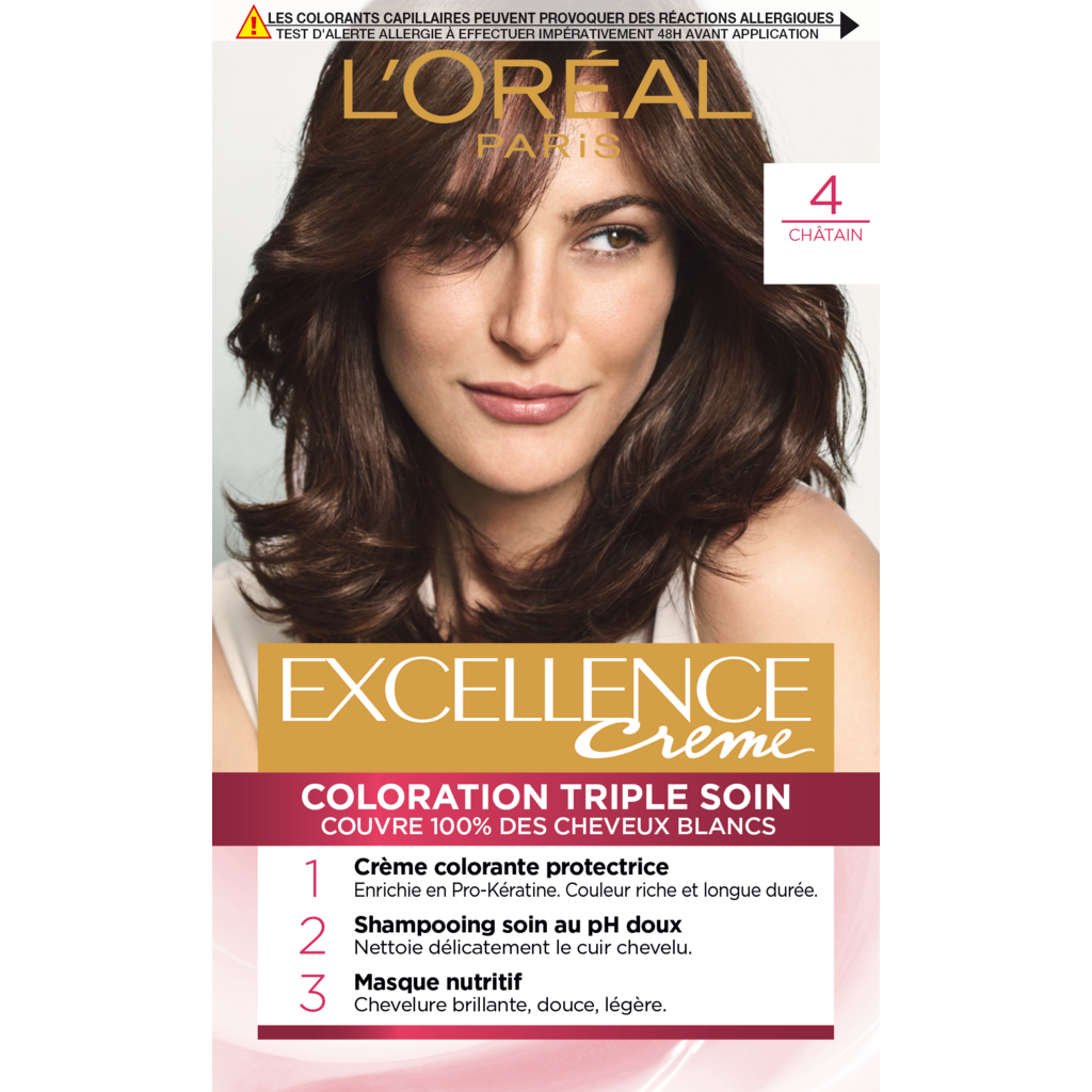 Coloration Permanente Triple Soin - Couvre 100% des Cheveux Blancs Votre couleur est riche et homogène, vos cheveux souples et brillants. L'Oréal Paris Excellence Crème Kit de Coloration