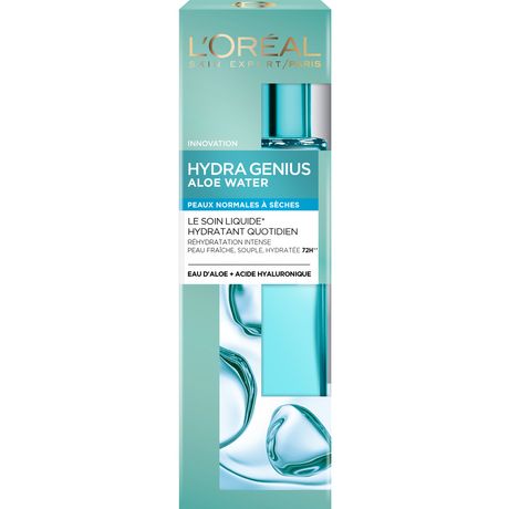 L'Oréal Paris Hydra Genius Soin Hydratant Visage 70 ml Soin Liquide Réhydratant pour Peaux Normales à Sèches, à l'Eau d'Aloe et à l'Acide Hyaluronique - Hydratation 72H Fraîche et hydratée pendant 72h**, votre peau retrouve confort et douceur. **test instrumental sur 26 sujets