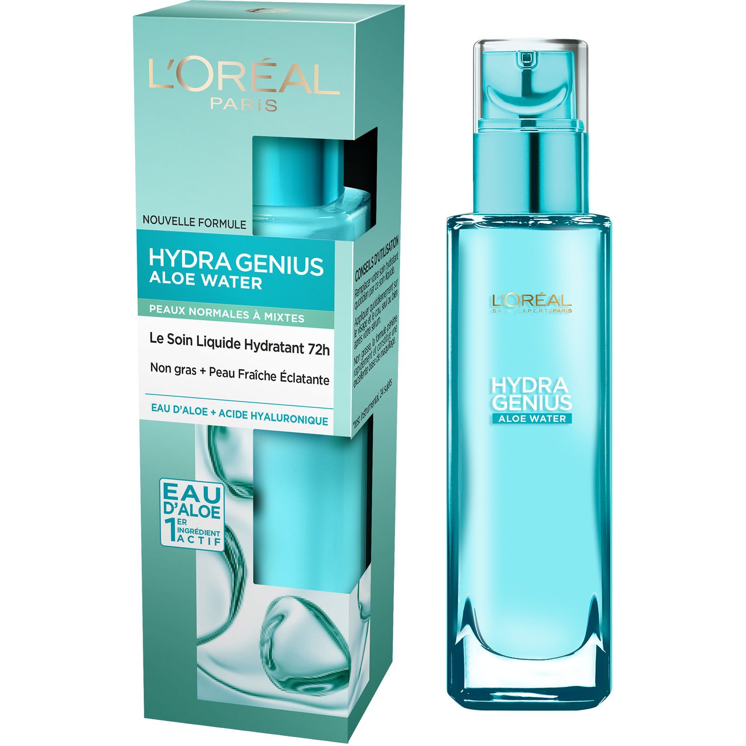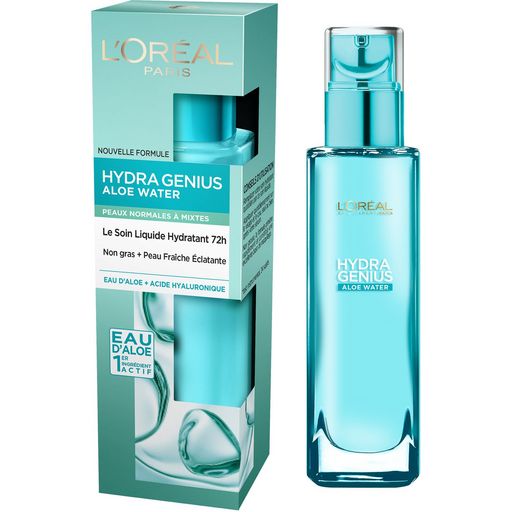 Hydra Genius Hydratant Visage Quotidient Peaux Normales à Mixtes 70 ml HYDRA GENIUS : Le 1er soin liquide réhydratant quotidien, à l'eau d'aloe et acide hyaluronique. Un soin hydratant nouvelle génération à la texture liquide, pour une peau fraîche et hydratée pendant 72h, sans effet gras ni collant. Inspirée par les « Cosmétiques Liquides » venues d’Asie, sa texture innovante, fluide et légère fond immédiatement au contact de la peau et pénètre instantanément dans l’épiderme pour diffuser toute son efficacité réhydratante. Résultat : fraîche et hydratée pendant 72h**, votre peau retrouve confort et douceur. **test instrumental sur 26 sujets