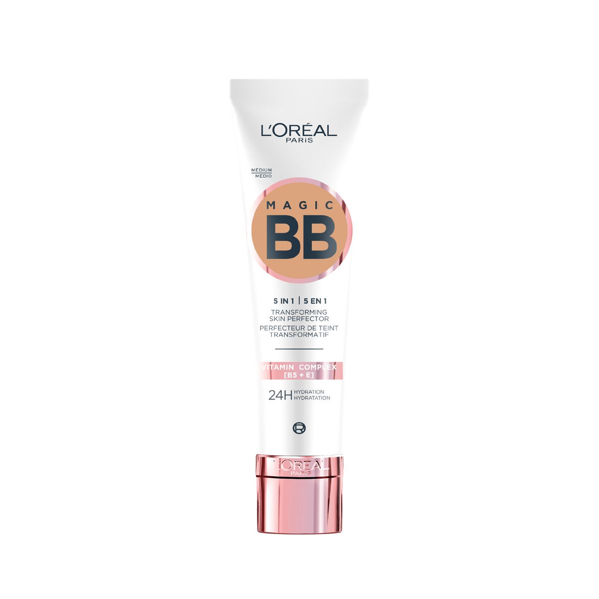 Nouveau Magic BB Crème teintée 5 en 1 : hydrate 24H*, unifie, lisse, illumine et protège. Une formule infusée en vitamines B5 et E pour une peau d'apparence plus saine en 2 semaines**. Non comédogène, elle convient aux peaux sensibles et aux peaux grasses. *Test instrumental. ** Test consommateur sur 113 femmes. Un teint lumineux et hydraté pendant 24 heures*. *Test instrumental.