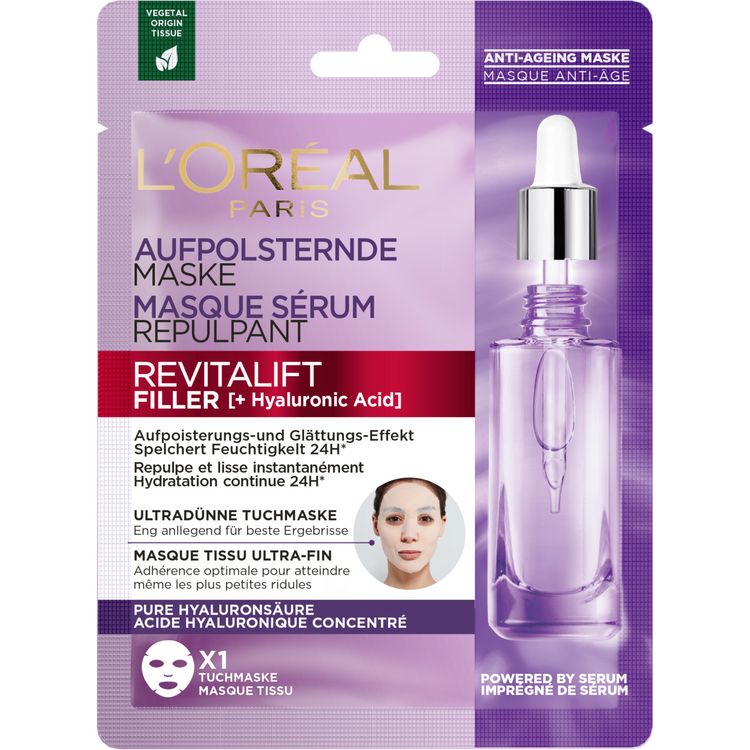 Masque Tissu Anti-Age Sérum Repulpant enrichi à l'Acide Hyaluronique concentré - Après 1 masque, la peau est intensément repulpée. Elle semble plus fraîche et ferme. - Après 3 masques, la peau parait reposée. Elle est plus lisse, plus lumineuse et plus belle.