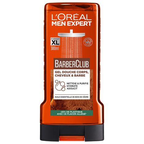 gel douche, douche, douche homme, barber club, men expert, men expert barber club, bois de cèdre, huile essentielle, nettoyant barbe, soin barbe, soin cheveux, cheveux et barbe, gel douche corps, gel douche 3 en 1