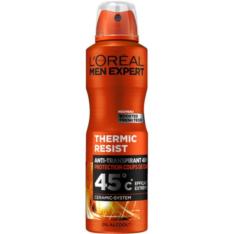 Anti-transpirant atomiseur homme Thermic Resist protection coups de chaud. Efficacité anti-transpirante 48h. L'Oréal Paris Men Expert Thermic Resist Déodorant Spray Homme 200.0MLT