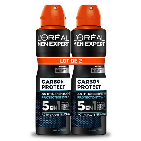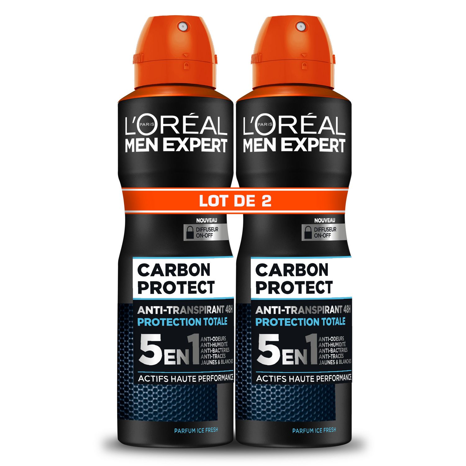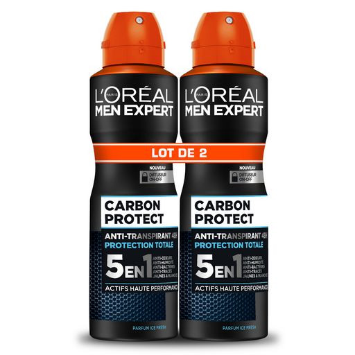 L'Oréal Paris Men Expert Carbon Protect 5-en-1 Ice Fresh Déodorant Spray Homme - Lot 2 x 200ml 400 ml Anti-transpirant atomiseur homme Carbon Protect 5-en-1. Protection totale 48h.