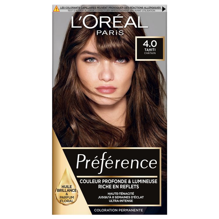 IGNORER UNE ALLERGIE PEUT METTRE VOTRE VIE EN DANGER. Faites, dans tous les cas, un test d’alerte allergie impérativement 48 heures avant chaque utilisation de ce produit, les allergies pouvant se développer de façon soudaine, même si vous avez déjà utilisé auparavant un produit de coloration de cette marque ou d’une autre marque. Ce test est une précaution importante qui a prouvé son efficacité quand il est mené dans les conditions expliquées sur la notice. Cependant, même si un test d’alerte allergie a été fait, vous pouvez toujours développer une réaction allergique quand vous colorez vos cheveux. Il ne ne vous garantit pas d’éviter de futures réactions allergiques. Pensez à acheter le produit 48h avant utilisation pour procéder au test. En cas de doute, veuillez consulter un médecin. Ne vous colorez pas les cheveux si : • Vous présentez une éruption cutanée sur le visage ou si votre cuir chevelu est sensible, irrité ou abîmé. • Vous avez déjà fait une réaction après avoir coloré vos cheveux. LES TATOUAGES TEMPORAIRES À BASE DE HENNÉ PEUVENT AUGMENTER LE RISQUE D’ALLERGIE, MÊME RÉALISÉS IL Y A LONGTEMPS. • Si vous avez fait par le passé une réaction à un tatouage temporaire noir à base de henné : ne vous colorez les cheveux en aucun cas. En cas de réaction pendant l’application telles que : • Picotements intenses, irritations, boutons, sensations de brûlure du cuir chevelu, rincez immédiatement et stoppez l’utilisation. Consultez un médecin. • En cas de difficulté à respirer, demandez immédiatement une assistance médicale. Avant de refaire une coloration, consultez un médecin. Si, pendant les jours suivants l’application, des démangeaisons, rougeurs, boutons sur le cuir chevelu ou sur la peau, gonflements des yeux et/ou du visage, cloques ou suintements du cuir chevelu et/ou de la peau apparaissent, il vous est recommandé de consulter un médecin et de contacter le fabricant et/ou l’autorité nationale compétente. Gardez l’emballage vide et les consignes d’utilisation quelques jours après l’utilisation du produit au cas où vous subiriez des réactions. • Portez les gants appropriés fournis dans l’étui. • Retirez tous les objets métalliques de vos cheveux avant de les colorer et gardez les éloignés tout le temps de la coloration. N’utilisez pas d'accessoires de coiffure en métal. • Préparez et appliquez le mélange de préférence dans un endroit bien aéré. • Evitez le contact du produit avec la peau et les yeux. N'employez pas ce produit pour la coloration des cils et des sourcils. • Ce produit contient des ingrédients qui peuvent causer des irritations sévères aux yeux et possiblement des lésions irréversibles. Rincez immédiatement et abondamment vos yeux si le produit entre en contact avec ceux-ci. Si vous portez des lentilles de contact, retirez-les avant de rincer vos yeux abondamment à l’eau. Dans tous les cas, demandez une assistance médicale. • N’inhalez ou n’ingérez pas le produit. • N’utilisez pas cette coloration sur une barbe ou une moustache ou pour tout usage autre que la coloration des cheveux. Evitez tout contact inutile avec la peau. • Rincez bien après l’application. • Attendez 15 jours après un défrisage, une permanente ou un lissage durable pour appliquer la coloration. N’utilisez pas ce produit si vos cheveux ont été colorés avec du henné ou un colorant capillaire progressif. Ne conservez pas de produit non utilisé. Gardez hors de portée des enfants. Toujours se référer à la notice en cas de doutes.